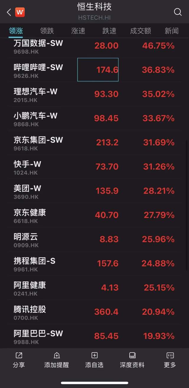 腾讯控股、阿里巴巴均涨超20%,美团、京东集团、快手均涨超28%。