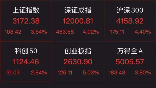 A股市场也开始大幅拉升,截至发稿,沪指大涨3.54%,深证成指涨4.02%。