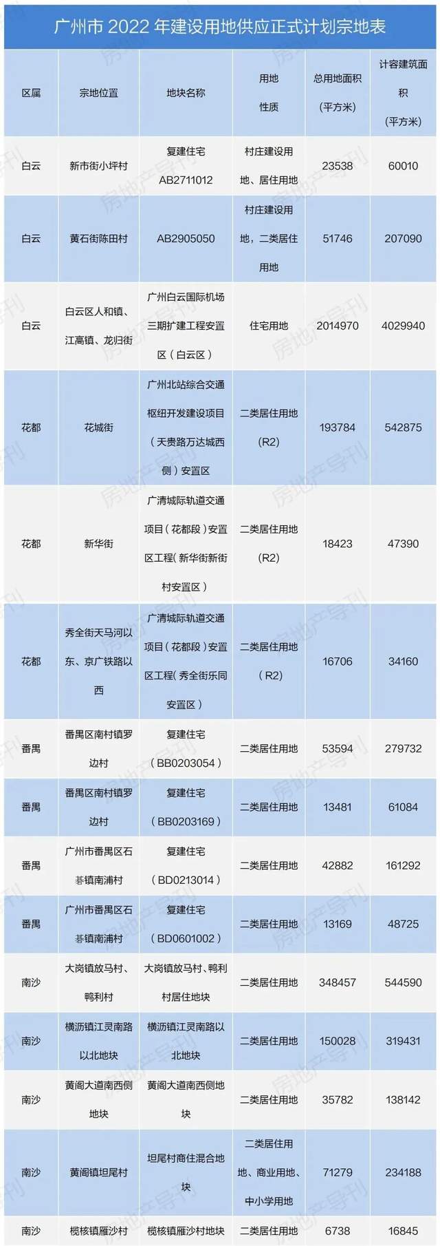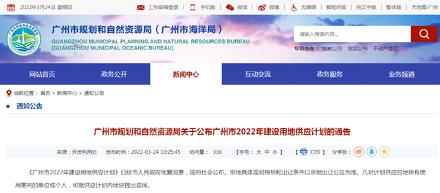 3月24日,广州市规划和自然资源局发布《关于广州市2022年建设用地供应计划的通告》。