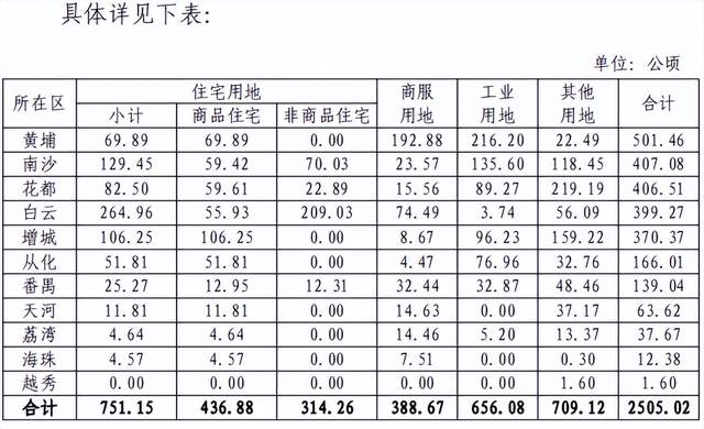 据计划,广州2022年建设用地计划供应总量为2505公顷。其中,住宅用地供应计划751公顷,占计划总量的30%,包含商品住宅用地437公顷,占住宅用地供应计划的58%,非商品住宅用地314公顷,占住宅用地供应计划的42%。