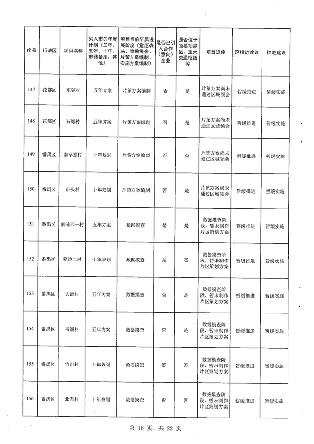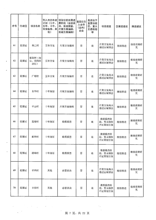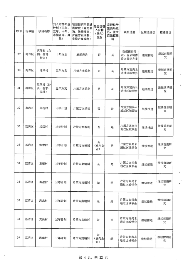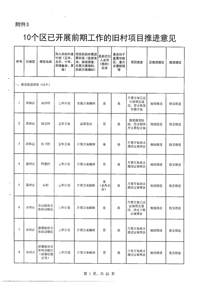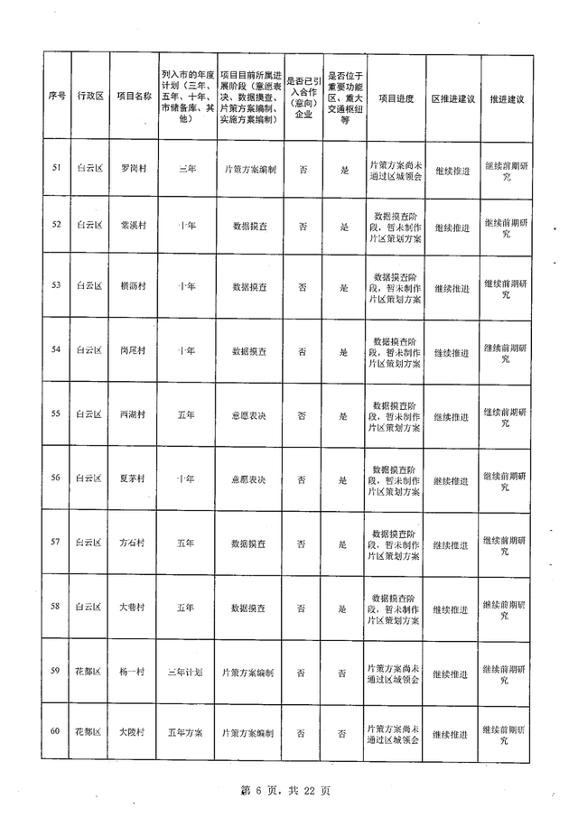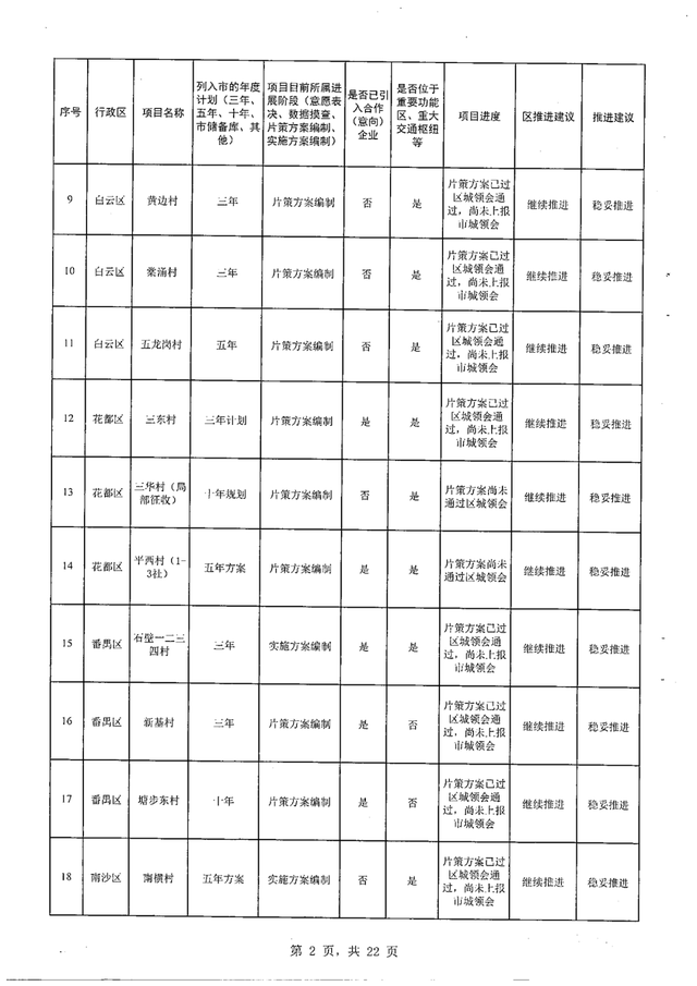 对于黄埔区以外的10区已批改造方案的项目,按照处理意见,加快完善手续、优化方案,依法依规积极推进项目建设。