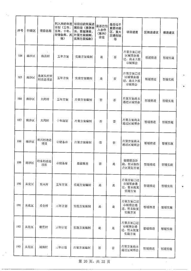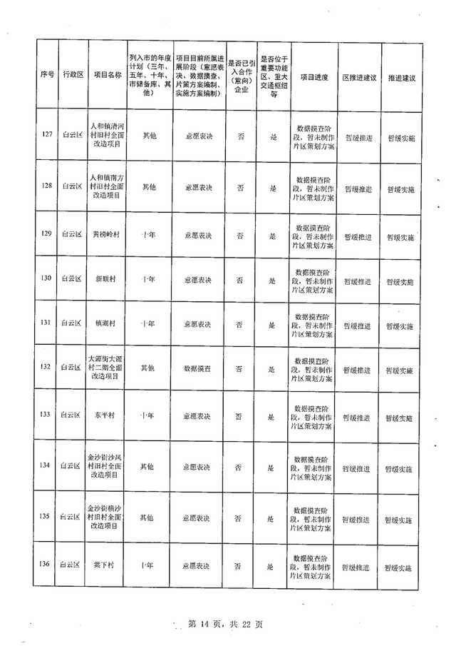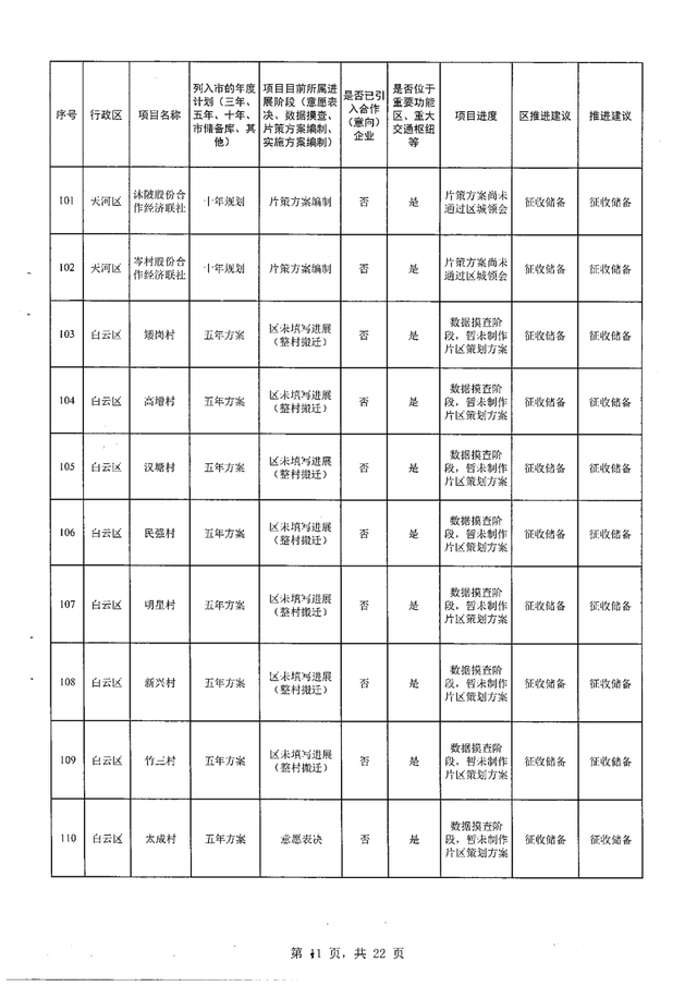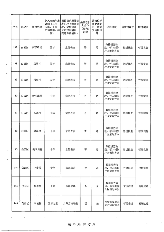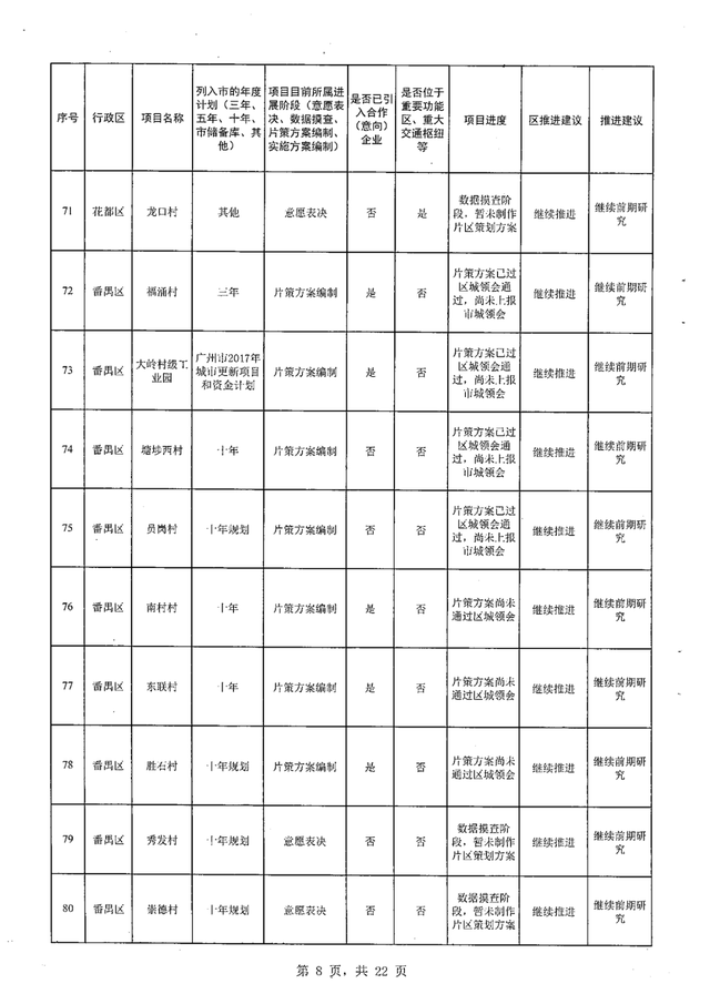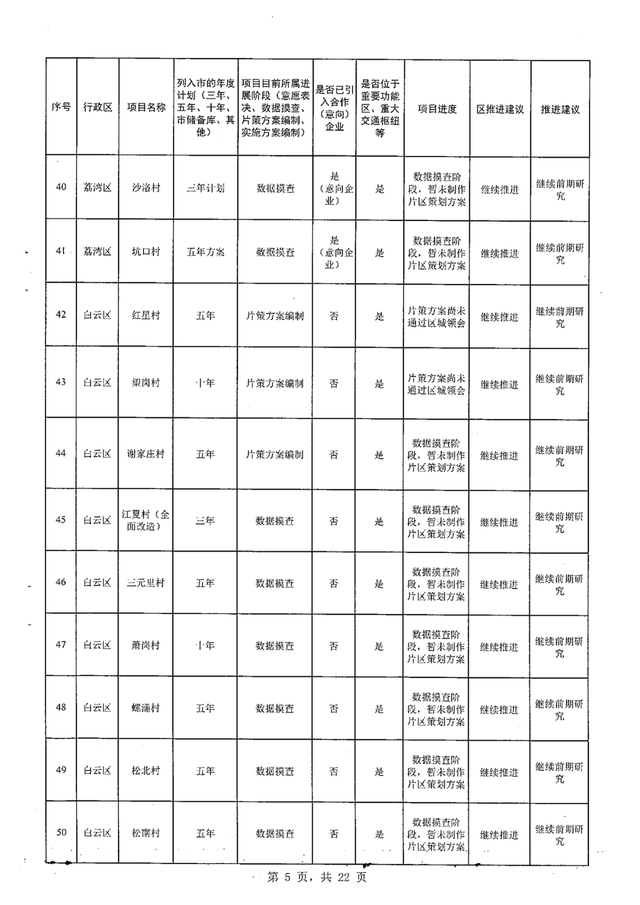 对于黄埔区以外的10区已批改造方案的项目,按照处理意见,加快完善手续、优化方案,依法依规积极推进项目建设。
