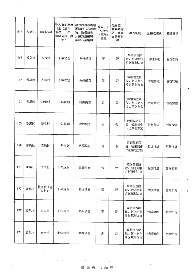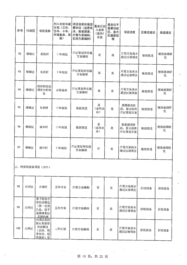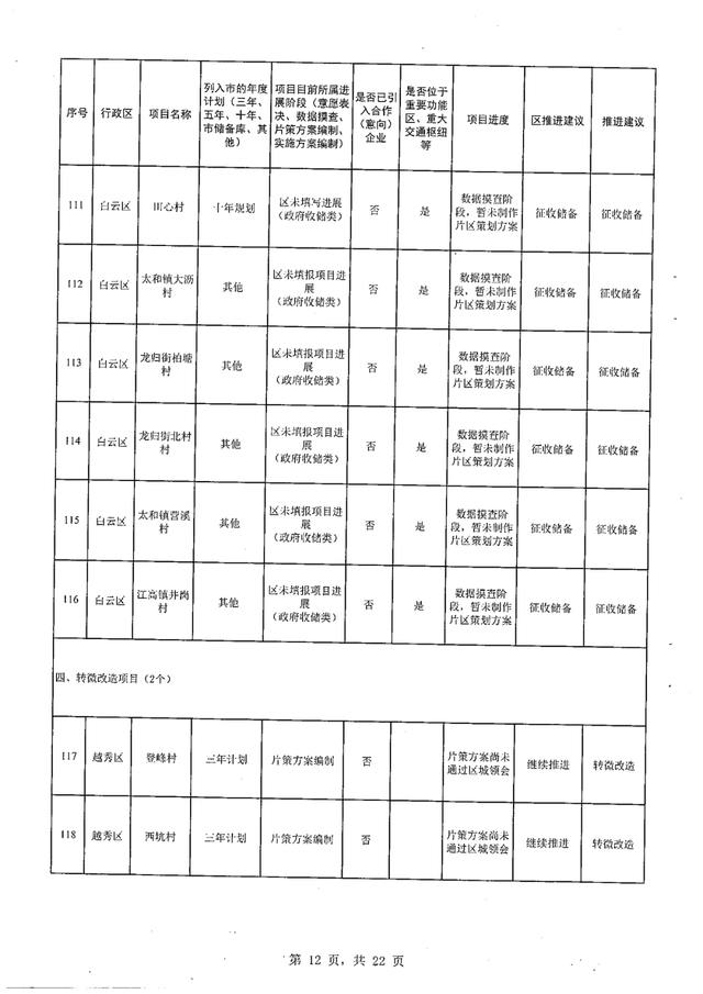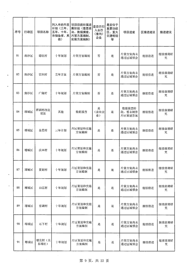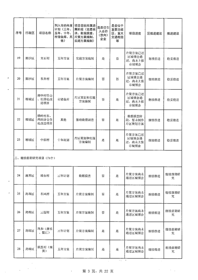 除黄埔区外10区已开展前期工作的项目。对建议稳妥推进和继续前期研究工作的项目,各区依程序开展前期工作(含招商工作);对确定转为征收储备或微改造的项目,各区按调整后的方式继续推进;对需进一步研究论证的项目,各区结合 本次会议意见和项目实际情况审慎研究,待条件成熟后可启动前 期工作。以上项目按规定纳入项目储备库和年度计划后方可组织实施。