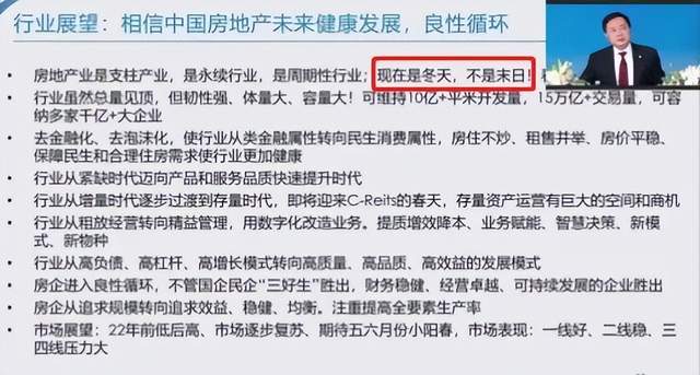 林中强调,现在是行业冬天,但不是末日。房地产行业是一个支柱产业,是一个永续行业,是周期性行业,这意味着它一定是有春夏秋冬的。相信冬天快结束了,春天也就不远了。