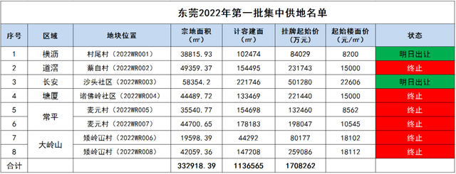 日前,2022年东莞首批居住用地集中供地正式挂牌上线,长安、塘厦、大岭山、常平、横沥等镇街共计出让8宗地块,起拍总价达170.83亿元,将于4月19-20日进行集中竞价出让。