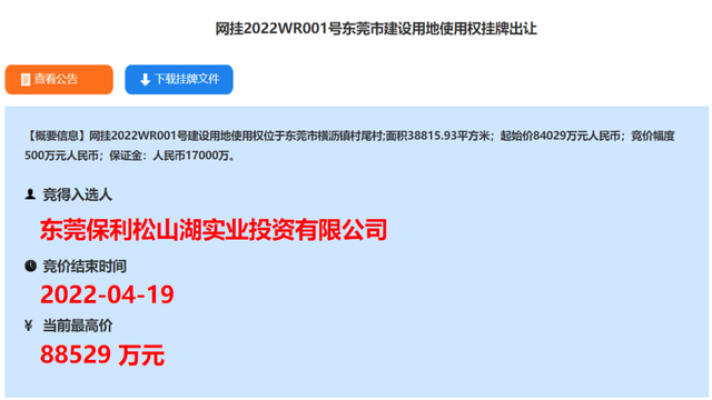 而东莞此次剩下的2宗地如常出让,其中,保利以8.85亿元斩获横沥3.88万平宅地,折合可售楼面价约8639元/㎡。