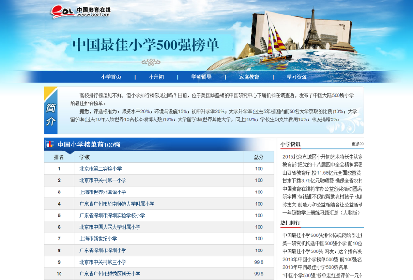 (▲中国小学榜单前100强排名)