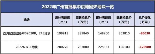 首先,降低地价。在今年首批集中供地中,有一些去年的 " 回锅肉 " 地块重新上架,指标有所调整,但总价均呈现下降趋势。