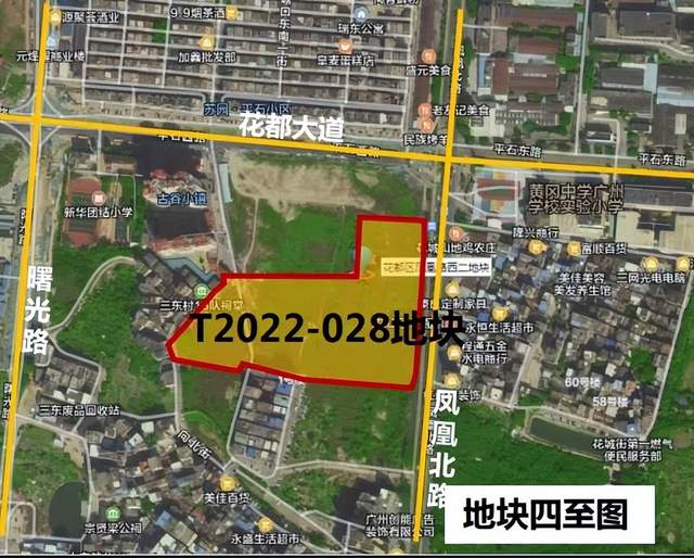 地块坐落在花都区凤凰路西,临近花都融创茂商业街和福达广场(在建)。地块周边一公里内有广州融创文旅城、凤凰瑞景两个在售项目,报价2.5-3万/平;二手则有龙门苑、凯旋门。