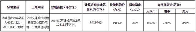 赤沙车辆段地块为本次第一轮中的巨无霸地块,计容建面41.95万方、起拍价94.54亿元,均为本轮的建面/起拍价第一。