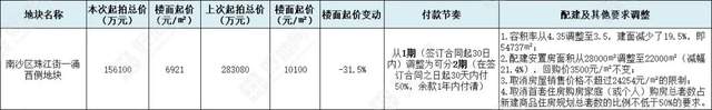 值得一提的是,该地块曾于去年第二批次流拍,此次重新挂牌,地块容积率、配建安置房面积、付款节奏等方面作出调整,楼面起价下降31.5%,具体调整为: