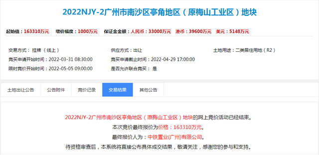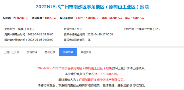 越秀地产以底价共29.37亿元斩获2宗,分别为2022NJY-3广州市南沙区亭角地区(原梅山工业区)地块,成交价273600万元,折合楼面价8952元/㎡;白云区广龙路AB0805104地块,成交价20145万元,折合楼面价2936元/㎡!(根据出让要求,该地块需建设全自持保障性租赁住房)