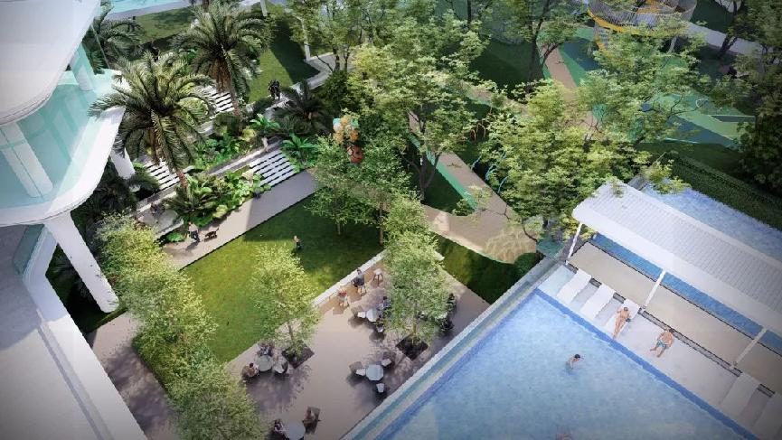 约90米超宽楼距让视野不受任何拘束,推窗而望,园区盛景,四季景致尽收眼底。