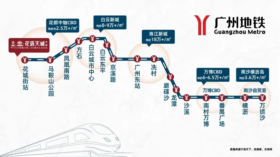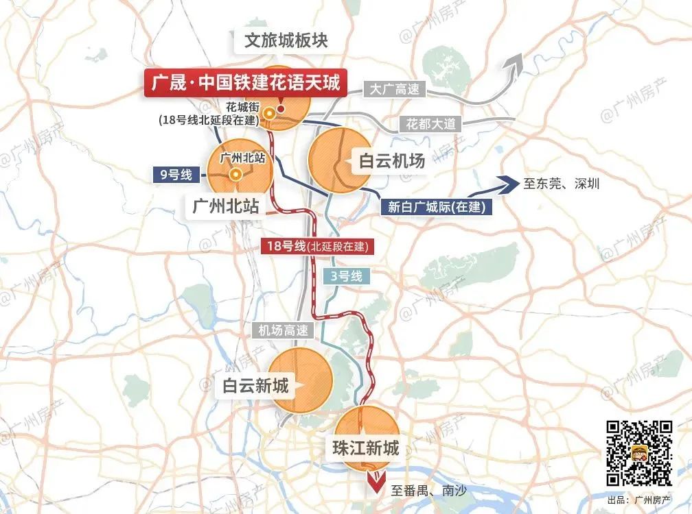 地铁18号线从南沙横沥岛、番禺万博、珠江新城、白云新城,再到北部的花都文旅城,18号线连接众多明星板块,恰好与广州经济动脉重合。