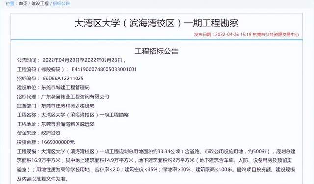 一期工程投资16.69亿,大湾区大学滨海湾校区启动勘察招标!