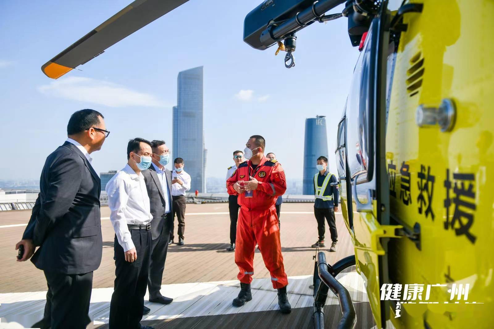 越秀金融大厦顶部拥有国内首条民用直升机城际定期航班航线的停机坪,拥有充足面积、高标准的气象及航管通信设备。基于其独特的停机坪配套资源优势,悦享会联合“中国直升机医疗救援示范企业”东部通航在大厦70楼天面专设应急救援培训交流中心,内配专业应急救援设备,合力打造广州CBD云端“最美应急站”。紧急情况下,可启动直升机穿越城市中轴线开展高空立体救援,实现短时间内联动消防和医护团队,对发生突发意外的业户进行施救。