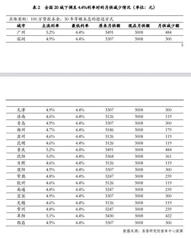 “从既有城市的观察来看,出现下调为4.4%利率的城市,普遍属于目前主流利率为4.6%-5.0%的城市,而主流利率为5.0及以上的城市,要一次性下降到4.4%的可能性相对小。”易居研究院智库中心研究总监严跃进总结称,目前温州、中山、盐城、沧州、成都、扬州、上海等城市主流利率都低于5.0%,后续一次性下调至4.4%的可能性也较大。