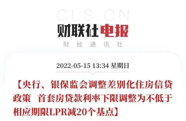 5月15日,央行、银保监会官宣,首套房利率下限调整为不低于相应期限贷款市场报价利率减20个基点!