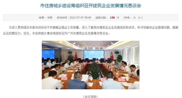 广州住建局召开建筑业企业发展情况恳谈会 16家企业参与