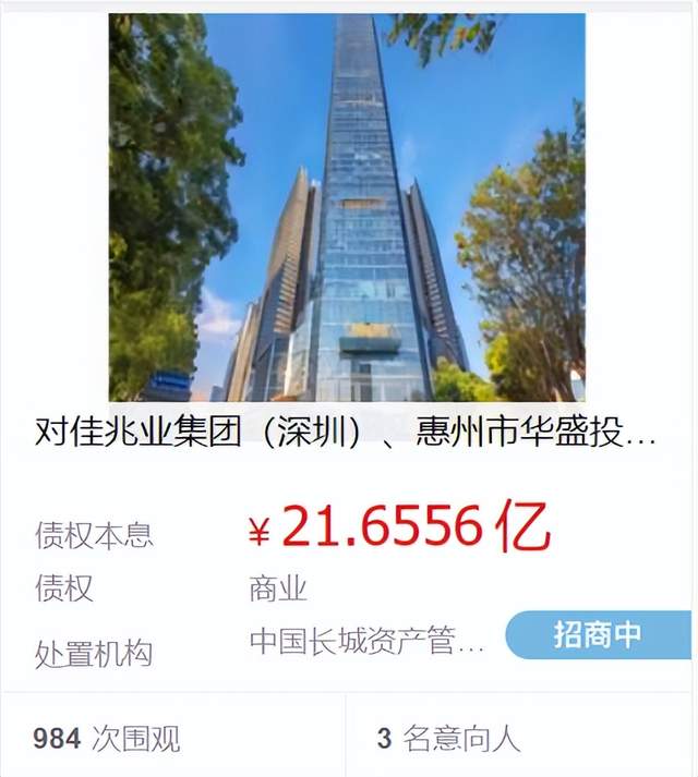 惠州佳兆业中心债权资产被摆上货架!