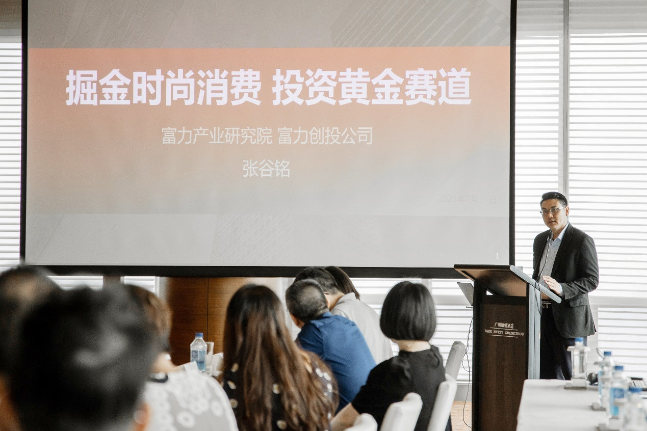 富力集团创投公司董事长助理张谷铭先生分享了《掘金时尚消费投资黄金赛道》,他表示随着我国经济持续发展,人均收入逐步提升,时尚消费的需求被进一步开发和升级。在科技创新,民族自信的新时代背景下,国潮势不可挡。在疫情的催化下,直播带货、社交导购等成为时尚消费新方式,以"Z世代"群体为主导的消费主力的消费观不断发生转变。他站在投资角度,从时尚产业背景、细分赛道、投资逻辑、投资建议等方面,分析资本应该如何切入时尚消费领域和赛道,以及投资策略。