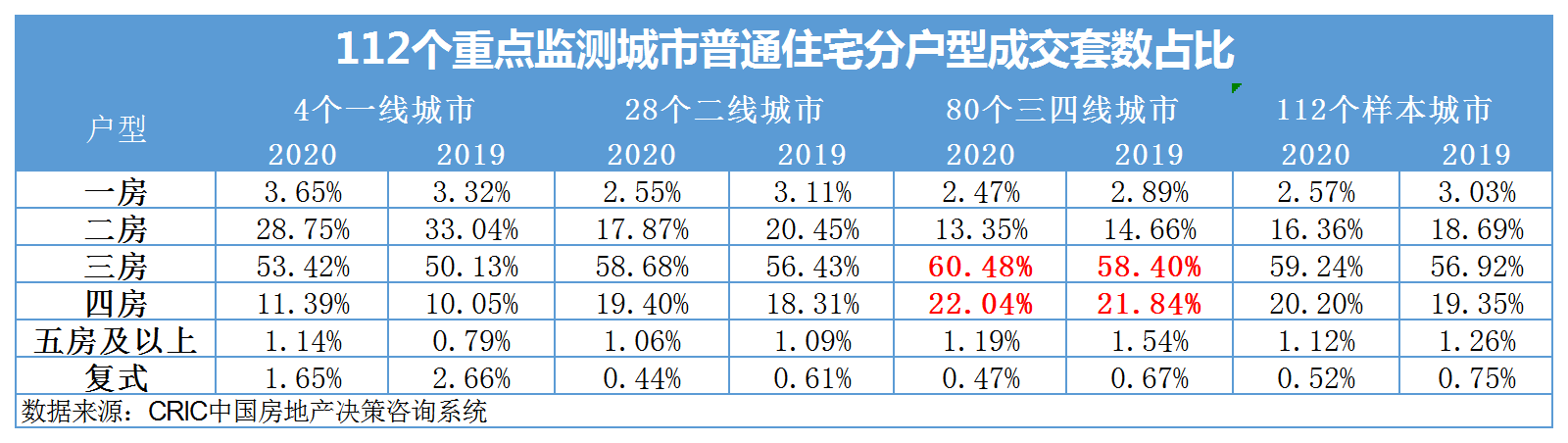 就成交主力产品而言,与一二线城市增量刚需的特征不同,三四线城市更趋向于大尺度舒适化的改善型产品。