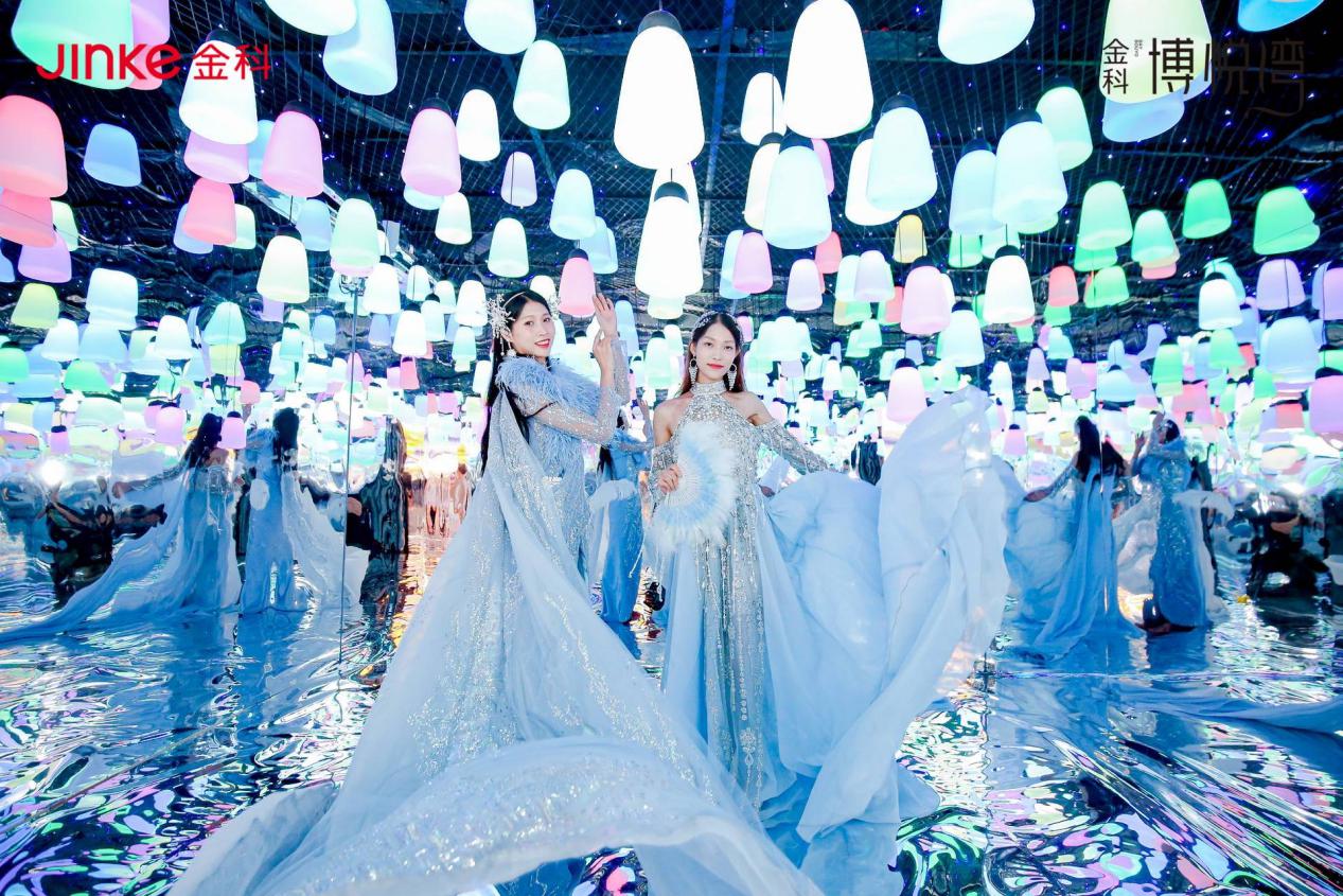 在隆重的开放仪式之后,来宾们怀揣着满心的好奇与期待,迫不及待地步入星云营销中心。金科·博悦湾营销中心内部,以“星云奇境”为线索,构建了“探境寻梦、云境织梦、景中幻梦、攀云捕梦”四重星云空间,为来宾们带来了一场别开生面的互动美学体验,着实让宾客们惊艳不已。
