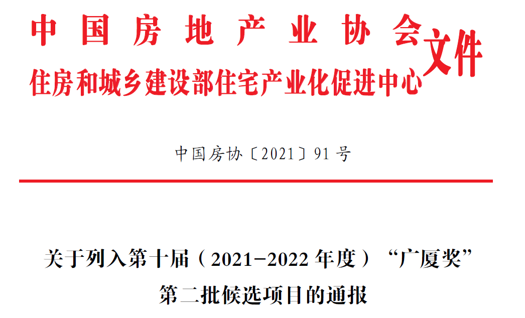 近日,中国房地产协会和中国城乡建设部住宅产业化促进中心发布《关于列入第十届(2021-2022年度)“广厦奖”第二批候选项目的通报》,全国共39个项目列入第十届(2021-2022年度)“广厦奖”第二批候选项目,其中广东省仅4个项目入围,广州越秀·和樾府榜上有名,并且是广州城央唯一获奖住宅。