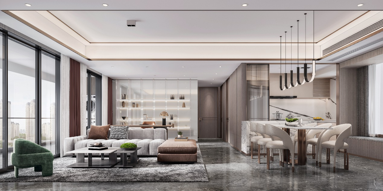 在户型设计方面,越秀·和樾府以更深层的思考将生活场景带入到人居尺度,将空间、自然和人的情绪相融合,通过功能完善、多情境营造来满足多维生活需求,以此来构建有温度、有高度的生活格调。在首期推售组团中,采取了“四宽三高”极致空间设计和一体化十字方厅布局等,迭新空间尺度,方寸之间深研人居细节,赋予家更多的空间想象。