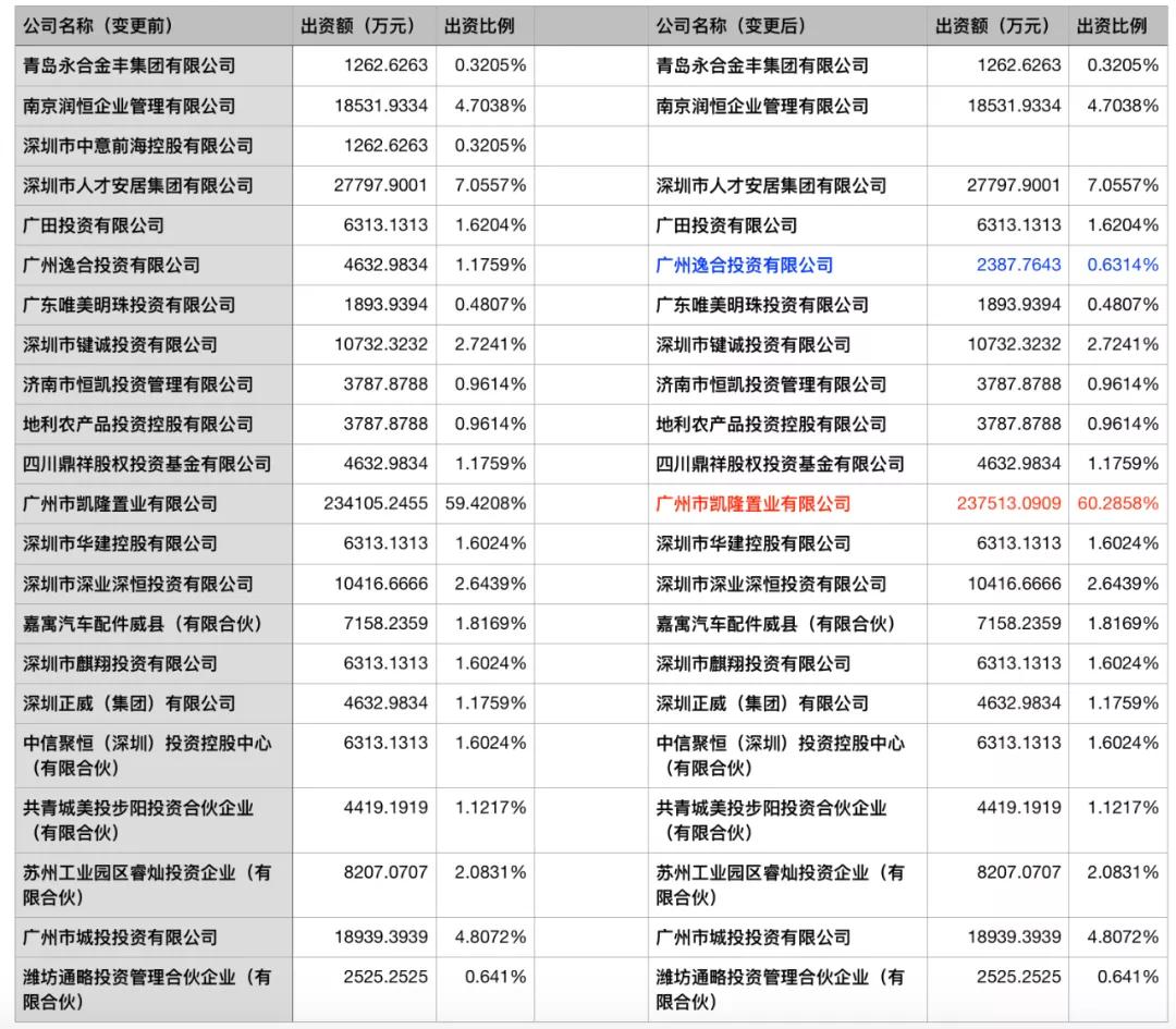 澎湃新闻在工商资料变更中发现,8月6日,恒大地产集团的投资人变更后,深圳市中意前海控股有限公司退出了恒大地产集团的股东行列,广州逸合投资有限公司的持股比例由原先的1.1759%下降至0.6314%,广州凯隆置业有限公司的持股比例由原先的59.4208%升至60.2858%。针对日前恒大地产集团董事长、总经理及法人都变为赵长龙事宜,恒大集团新闻发言人表示,此项变更系恒大地产借深深房回A股终止后的正常变动,未涉及具体管理架构、股权的变化。恒大地产集团是恒大集团的子公司,2017年8月前,公司的董事长、总经理及法人也一直都是赵长龙。资料显示,赵长龙,1998年入职恒大地产集团,历任开发中心总经理、总裁助理、副总裁、区域公司负责人。于2021年7月8日调任为恒大物业集团有限公司执行董事兼副董事长兼总经理。现任恒大地产集团董事长、总经理、法人代表,恒大物业执行董事兼副董事长。对于此番董事长、总经理及法人的再度变更,相关法律及金融人士分析表示,考虑到恒大地产的债务规模较高,如果发生局部违约,可能拖累相关高管成为失信人,许家印及柯鹏作为恒大集团核心高管,一旦被拖累成为失信人,会引发一些连锁反应,此番操作有规避相关风险的意思。值得一提的是,今天还有消息传出,恒大已经出售大湾区总额500亿项目。预计减轻负债300亿,获取现金400亿,其中,广深两地项目应该能释放300-500亿。