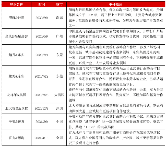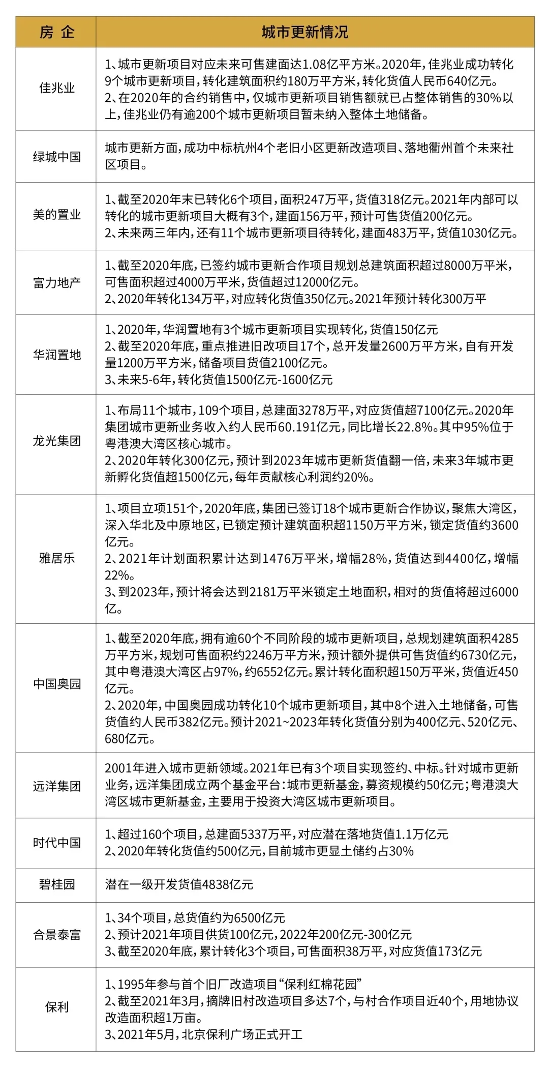今日头条 城市更新政策收紧,对哪些房企影响最大? 近日,住房和城乡建设部就《关于在实施城市更新行动中防止大拆大建问题的通知(征求意见稿)》(以下简称“征求意见稿”)公开征求意见。意见稿释放了收紧城市更新、防止大拆大建的政策信号。 公开数据显示,目前中国百强上市房企中,参与城市更新的比例已达80%,并且已有51%的房企运营规模超百万平方米。据睿和智库不完全统计,佳兆业、恒大、富力、融创、保利和时代中国这六家房企城市更新潜在总面积均超过5000万平方米,美的、时代中国、中国奥园等房企也在2020年转化了超百万平方米的建筑面积。 部分房企城市更新项目储备及其预计转化周期 来源:睿和智库制表 2021年上半年房企部分城市更新统计 来源:克而瑞 而此次征求意见稿对城市更新明确了“坚持留改拆并举、以保留利用提升为主”的原则,增强了房地产行业和部分以城市更新为主要拿地来源的房企的不确定性。 具体提出严格控制大规模增建,原则上更新单元(片区)或项目内拆建比不宜大于2;严格控制大规模搬迁,更新单元(片区)或项目居民就地、就近安置率不宜低于50%;同时,对拆除的规模和节奏也提出了要求:“不大规模、短时间拆迁城中村等城市连片旧区,导致住房租赁市场供需失衡,加剧新市民、低收入困难群众租房困难。” 这些规定,在一定程度上有一刀切的意思,对于想布局城市更新,拿地绕开监管与土拍的房企影响较大。比如TOP50以下的房企大多以单一住宅开发为主,缺少城市服务运营经验。在层层政策压力之下,短时间或很难开发新的项目。而具有城市更新基因的房企,比如卓越集团、大华集团等,下半年或将继续拓展全国业务。 2020年以来,房企合作城市更新统计表 热点新闻 专家:各线房价涨幅收窄 调控效果持续显现 证券时报:最新数据显示,7月份各线城市新建商品住宅和二手住宅销售价格环比涨幅回落或转降,同比涨幅回落或与上月相同。专家认为,7月整体房价涨幅收窄或转降,房价调整范围覆盖一线、核心二线及热点三线城市等。当下越来越收紧加码的调控政策有望平稳市场,预计下半年一线城市大部分将进入调整周期,针对二、三线局部房价升温城市的调控将会加大,各线城市房价有望继续趋稳。 强监管下的广州房贷:年内5次提价 二套利率破“6” 21世纪经济报道:有消息称,8月中旬广州首套房贷利率全面上浮,大部分按照5.85%执行,具体以银行审批为准。事实上,此前广州地区就有国有大行上调了房贷利率。根据最新的LPR报价,目前广州地区主流首二套房贷利率分别为5.85%以上和6.05%以上,这不仅远高于其他一线城市,在全国主流城市中也遥遥领先。 佛山加强房地产经纪机构和住房租赁企业租赁业务监管 8月17日讯,佛山市住房和城乡建设局发布关于征求《关于进一步加强房地产经纪机构和住房租赁企业租赁业务监管的意见(修订稿)》社会公众意见的公告。其中提出,单次收取租金超过3个月的,或单次收取押金超过1个月的,住房租赁企业应当将收取的租金、押金纳入监管账户,并通过监管账户向房屋权利人支付租金、向承租人退还押金。 TOP100房企动态 恒大地产:8月17日,国家企业信用信息公示系统(广东)显示,恒大地产集团更换董事长、总经理以及法人代表。许家印不再担任恒大地产董事长,柯鹏卸任总经理、法人代表等职位,新任董事长、总经理和法人代表均为赵长龙,其目前职位为恒大物业执行董事兼副董事长。据恒大集团新闻发言人表示,此项变更系恒大地产借深深房回A股终止后的正常变动,未涉及具体管理架构、股权的变化。恒大地产集团是恒大集团的子公司,2017年8月前,公司的董事长、总经理及法人也一直都是赵长龙。 万达商管:8月17日,大连万达商业管理集团股份有限公司发生人事变动。据了解,大连万达商管总经理由齐界担任,肖广瑞退任并继续担任公司董事。同时,新增董事曾茂军,王志彬退任董事。大连万达商业管理集团股份有限公司成立于2002年9月16日,法定代表人为齐界,注册资本为45.27亿元人民币,经营范围包括商业综合体管理服务;商业项目建设管理及咨询;自持商业项目建设等。 中国奥园:8月16日,深圳公共资源交易中心发布《深圳市龙岗区吉华街道松元头贵坑片区城市更新项目成交结果公示》,确认深圳中建源实业有限公司为该项目合作方(该公司大股东为奥园集团)。该项目位于深圳市龙岗区吉华街道联布北路,拆除范围用地面积为4.01万平方,可建设用地面积为2.36万平方。 力高集团:8月17日公告称,根据公司目前可得资料及集团截至2021年6月30日止6个月的未经审核综合管理账目的初步评估,预计该期间溢利(扣除所得税开支后)将较2020年同期录得增长不少于50%。据介绍,有关增加乃主要由于由集团于该期间已交付物业发展项目的总建筑面积及毛利增加;及来自投资物业公平值变动的收益增加所致。 首开股份:8月17日以总价24.58亿元竞得佛山新城水口站TOD一宗宅地,折合楼面价约12154元/㎡。该地块位于乐从镇规划银桂路以北、百顺道以西,离佛山新城中心城区约1公里路程。地块用地面积8.28万㎡,容积率2.5,计容建面20.71万㎡。值得一提的是,该地块条件指出,地块南侧规划建设地铁3号线、14号线,最终应以经批准的方案为准,但地块内建筑须对轨道线进行避让,并做抗震减噪处理。 嘉里建设:8月17日