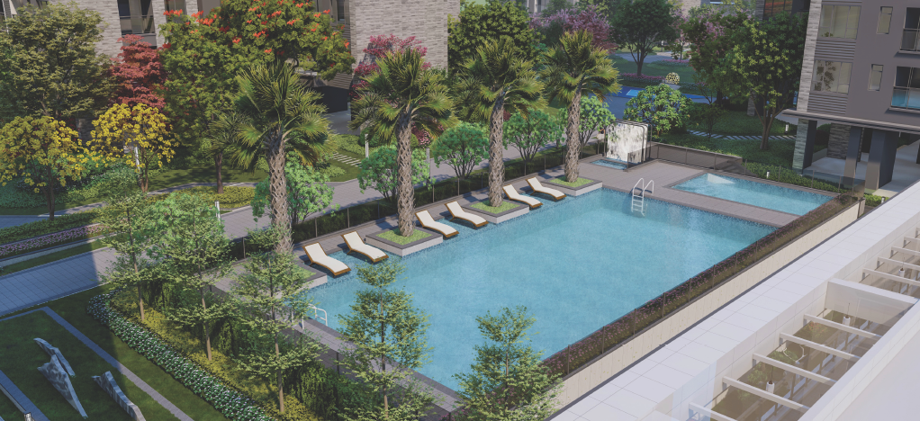 园林设计上,景业壹方天地以“东方美学生活”为灵感,结合传统中式园林的归家礼序和仪式感,勾勒出“五进园林景观”,从园区9米多高的大门到风雨连廊、镜面泳池,沿线以灵动又有序的设计线条、多种类植被的组合以及雕塑造景,营造出步移景异的丰富园林观赏体验。