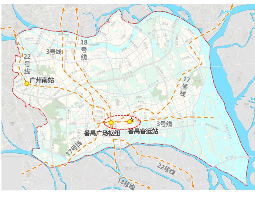 根据规划,番禺广场TOD板块将高端定位打造成为以交通枢纽、行政办公、文化休闲、商业商务等功能为主导的番禺未来城市中心。