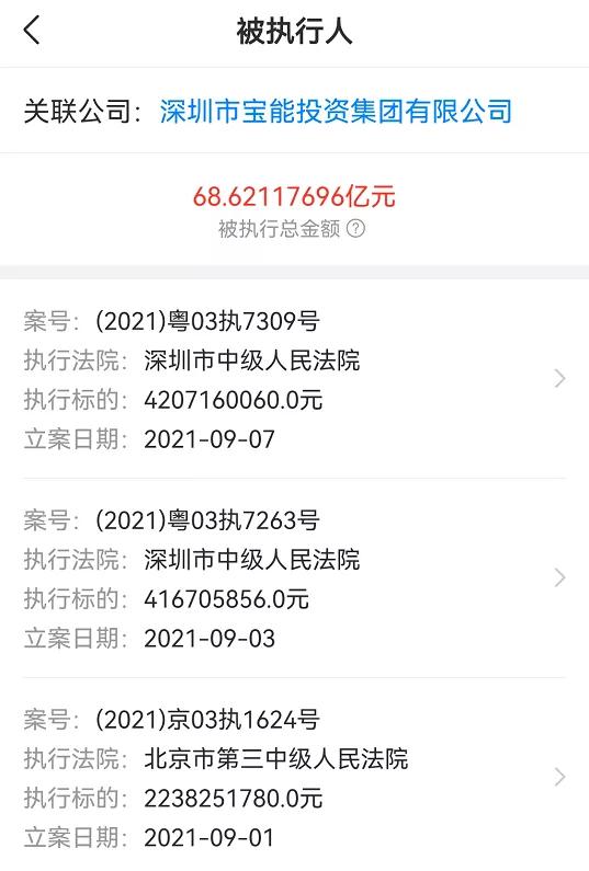 曾经因为“宝万之争”在资本市场上一战成名的宝能集团,如今正逼近现金流危机。短短半个月内,被执行金额68.62亿元之后,又被追债42亿元!从9月1号开始到现在,深圳市宝能集团已经3次被法院列为被执行人,执行金额高达68.62亿元,其中有两笔是在深圳市中级法院,执行金额分别为42.07亿元、4.17亿元;另一笔为北京市第三中级法院,执行金额为22.38亿元。