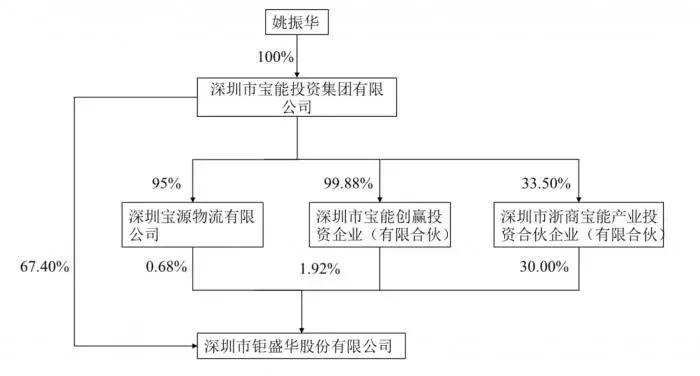 宝能集团成立于2000年3月23日,注册资本3亿元,总部位于中国深圳经济特区,主要有高端制造、国际物流、综合开发、民生服务四大核心业务板块,2020年末,宝能集团合并口径资产总额为5653.03亿元,净资产为591.80亿元;2020年度实现营业收入990.46亿元,实现净利润32.48亿元。姚振华持有宝能集团100%股权,宝能集团持有钜盛华67.40%股份,钜盛华持有前海人寿51%的股权,姚振华为实际控制人。