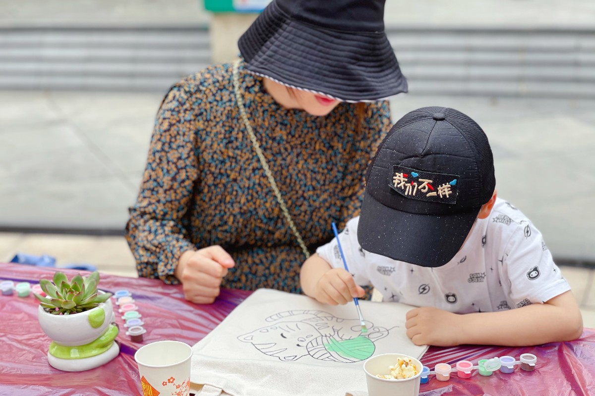 植树活动之余,还有社区同步开展亲子手绘DIY购物袋活动,从小小购物袋入手,传递生态保护理念,延伸植树节的内涵与意义,以生动有趣的方式让环保意识在心中生根发芽。